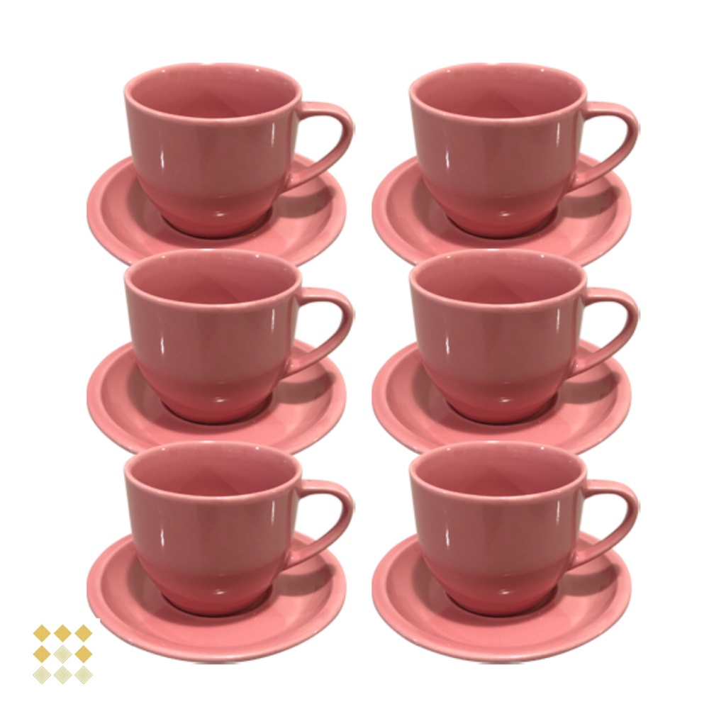 Jogo 6 Xicara Café Chá Porcelana Rosa 170ml Com Pires Lar e Decoração