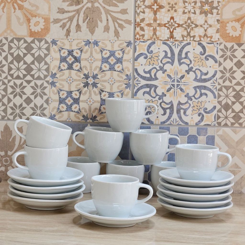 Jogo 10 Xicara Com Pires Branca 170ml Porcelana Chá Café Capuccino Chocolate Quente Promoção