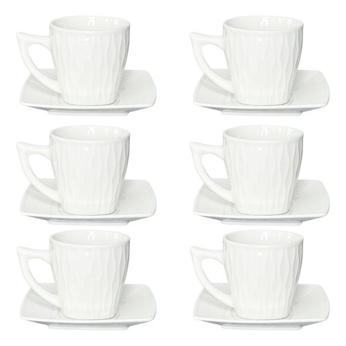Jogo Conjunto Xícara Porcelana Branca Premium Café Cafézinho com 6 Xícaras e 6 Pires 90ml