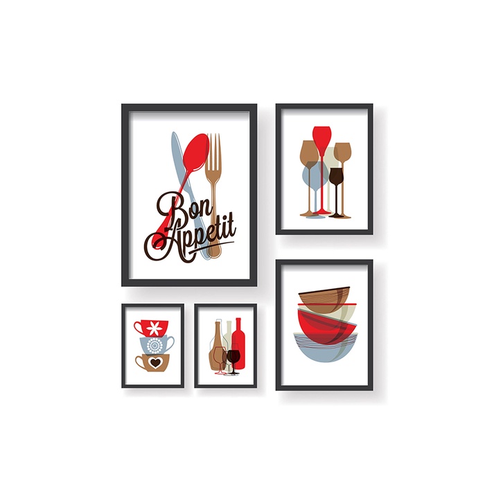 Kit Quadros Decorativos Mosaico 3 Peças Trio Cozinha Frase Bom Apetite Cantinho do Café Coffe Cozinheiro Delicado Vintage Talher Taça Xicará Presente