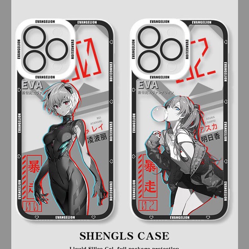 Concha Para Xiaomi Redmi Nota 12 4G 12C 10C 9T A1 A2 Plus 9 10 11 12 Pro 10S 11S 12S Invólucro Do Telefone Anime Neon Evangelion Ayanami Rei Asuka Langley Soryu