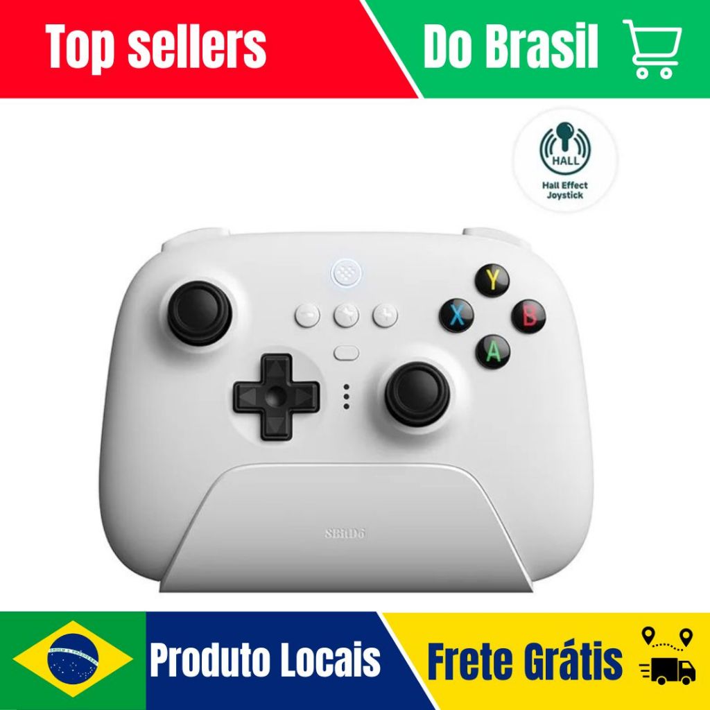 8BitDo Ultimate Controle Sem Fio Wireless 2.4G Hall Joystick Com Dock De Carregamento Para PC , Windows 10,11 , Steam, , Android , Apple