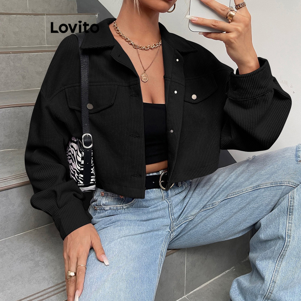 Lovito Jaqueta casual de bolso falso frontal com botão liso para mulheres LNL61022