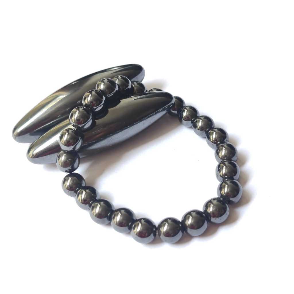 Pulseira Hematita Magnética - Força - Proteção - Auxilio Emagrecimento - Unissex- Pedra Natural 8mm