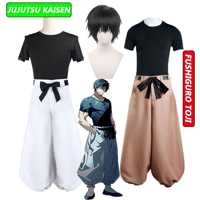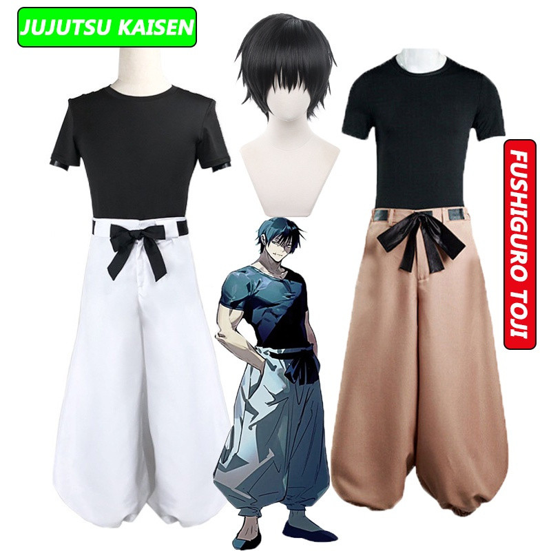 Fantasia de Cosplay de Anime Jujutsu Kaisen Fushiguro Toji, Calças Adulto Unissex, Peruca de Combate para Halloween LPYZ
