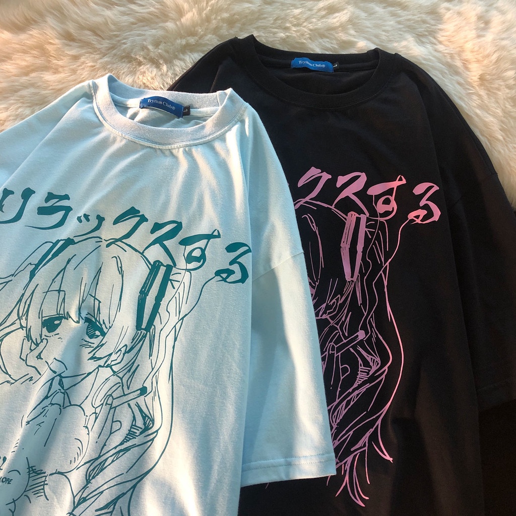 sweet punk T-shirt women summer 2021 Korean ins Japanese Harajuku style hot anime print loose student short sleeve shirt