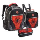 Kit Mochila Infantil Masculina Escolar Alça de Costas Lancheira Térmica e Estojo Duplo