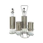 Kit Galheteiro 6 Peças Sal Pimenta Porta Azeite Vinagre Condimentos Temperos