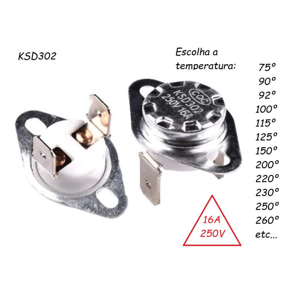 Termostato KSD302 16A 75 92 115 120 125 150 165 200 220 250 260 graus KSD301