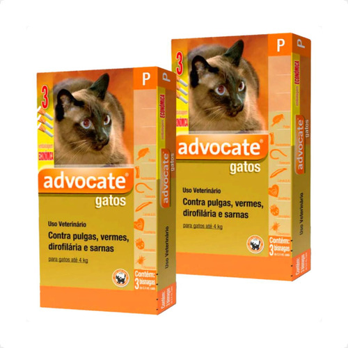Kit 2 Antipulgas Advocate Elanco 0,4 mL para Gatos até 4 Kg - 3 Bisnagas