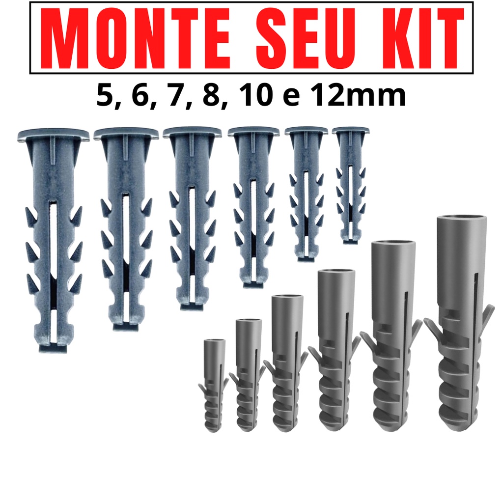Bucha com ou sem Anel Aba 5 - 6 - 7 - 8 - 10 - 12 Fixação para Parede Kit Buchas 5mm 6mm 7mm 8mm 10mm 12mm S Comum