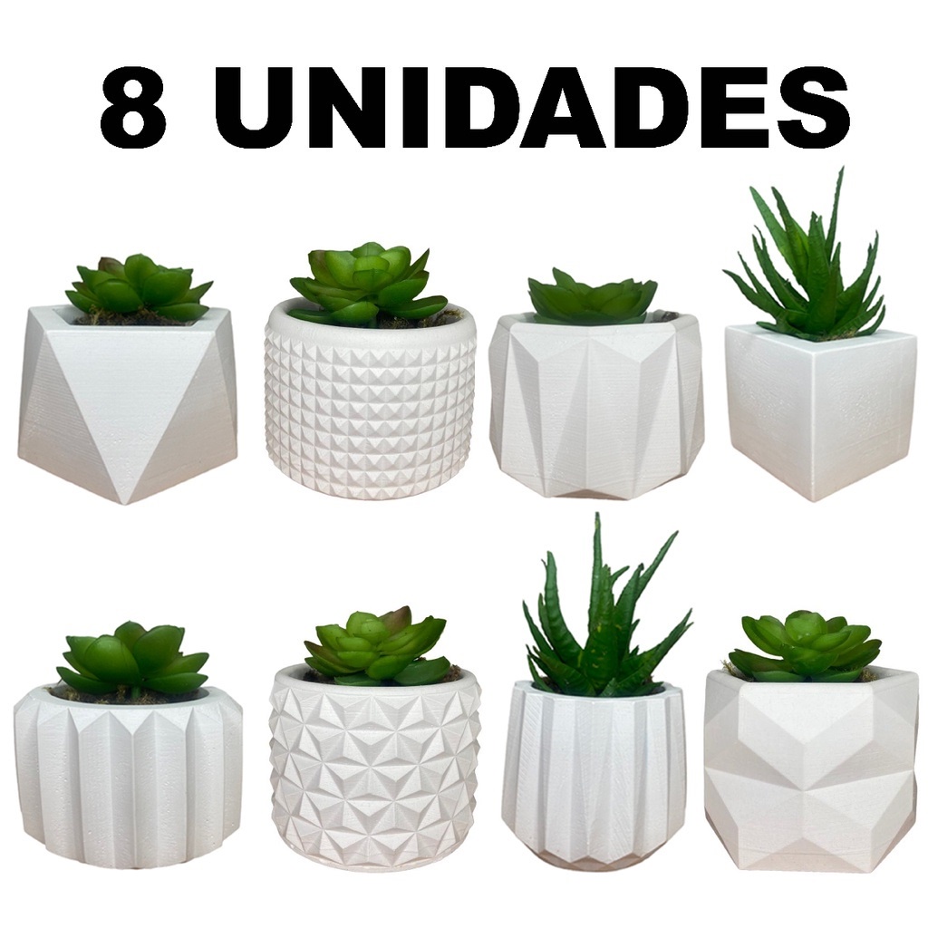Kit 8 Unidades Vaso Decorativo de Gesso Texturizado Para Suculentas, Cactus e Plantas Artificiais ou Naturais