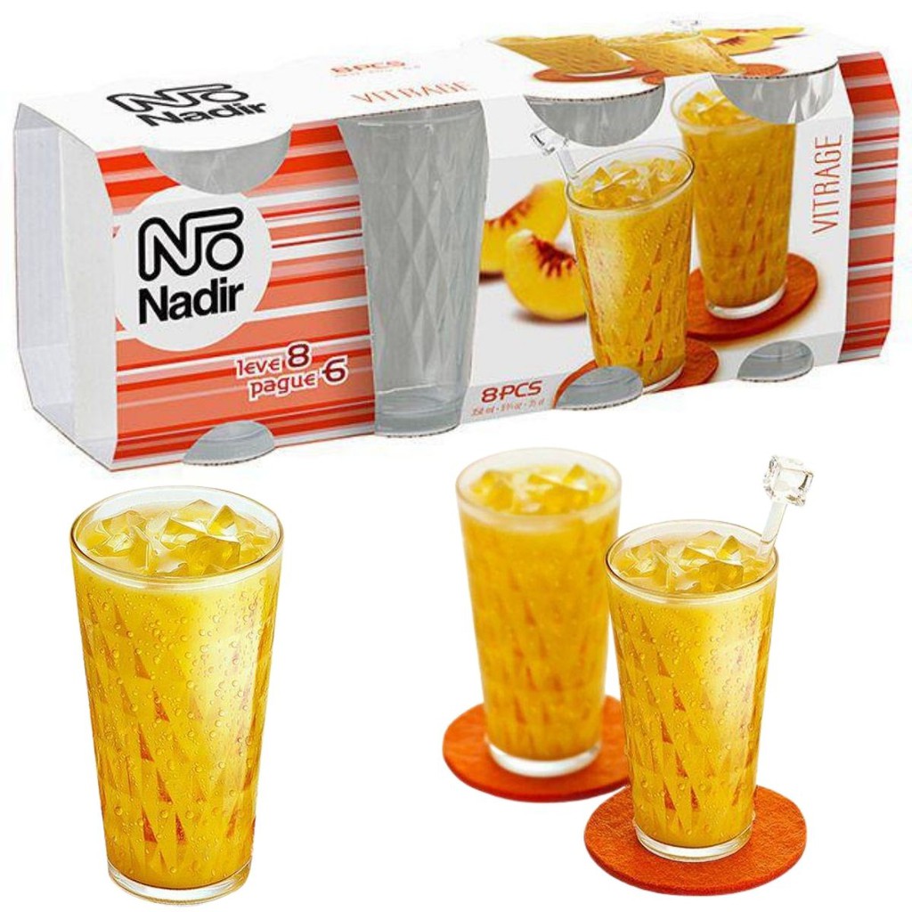 Copos de Vidro Jogo Kit 8 Peças Grande 335ml - Original Exclusivo Nadir Vitrage - Para Sucos Refrigerante Vitamina Cerveja ou Água