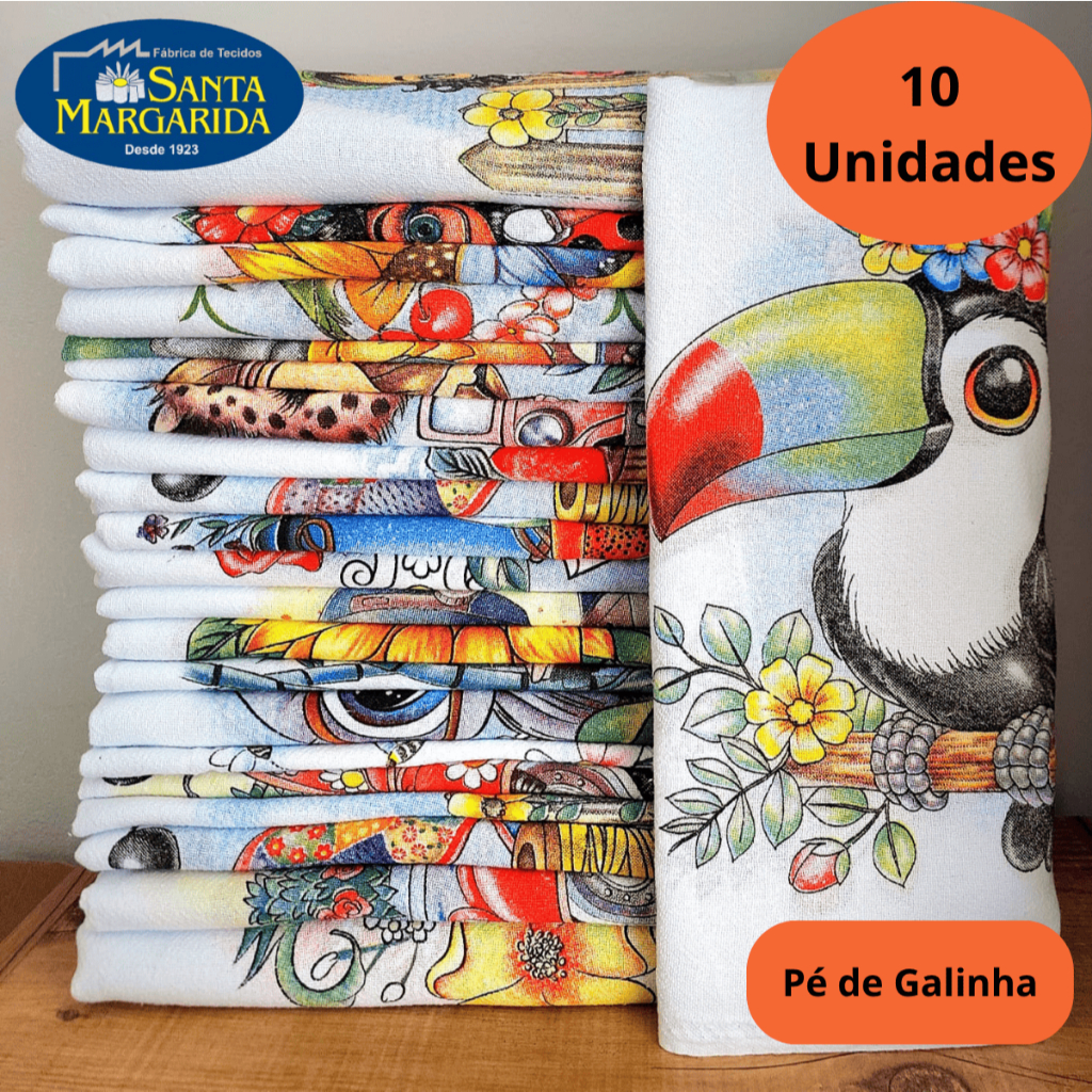 Kit 10 Pano De Prato Estampado Pé de Galinha Santa Margarida Oferta