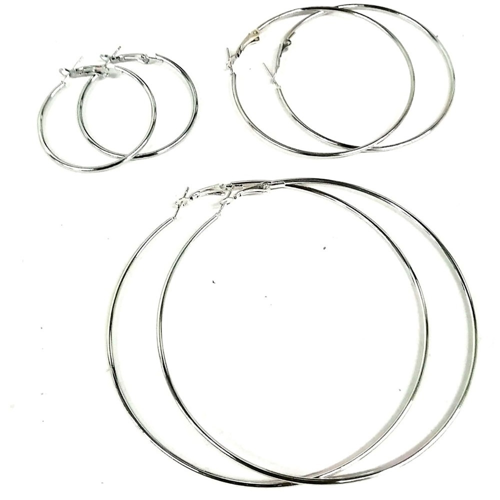kit de 3 pares Brincos Argola Em Aço prata tamanho sortidas 4-8#