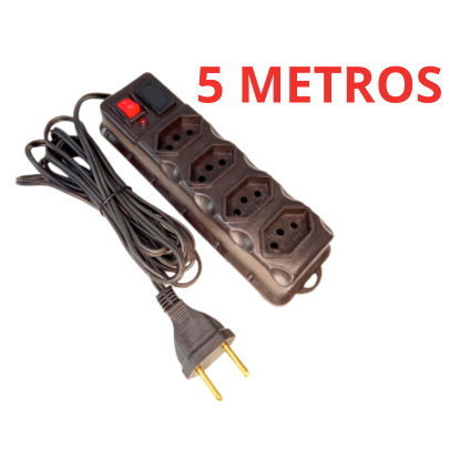 Filtro de Linha Régua 4 Tomadas Cabo 3 Metros e 5 Metros bivolt Com Proteção Fusível Chave E Led