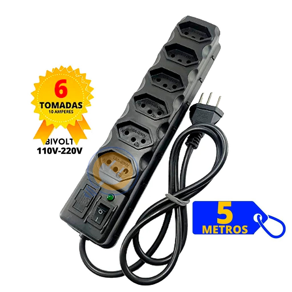 Filtro de Linha com Cabo PP 3, 4, 5 e 6 Tomadas 3 e 5 Metros bivolt Com Proteção Fusível Chave E Led