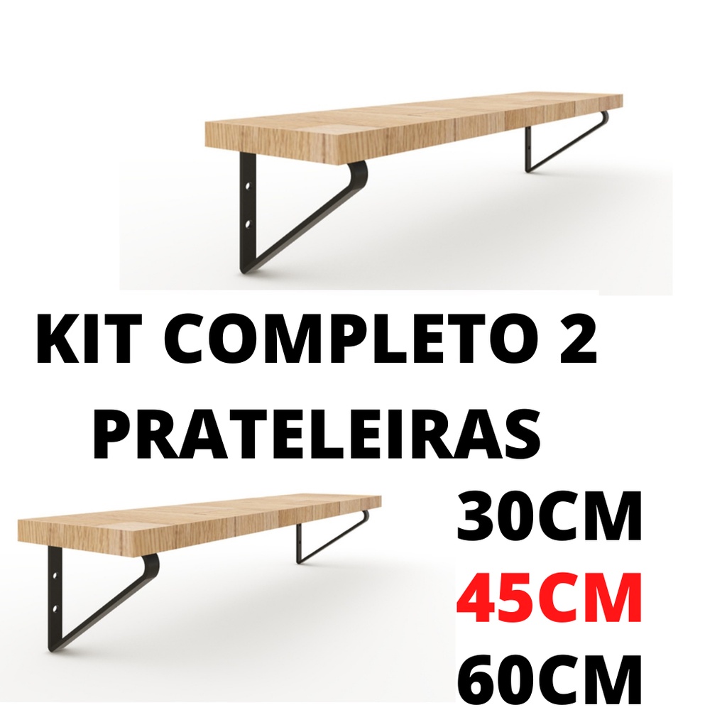Kit 2 Prateleiras Industrial Madeira + Mão Francesa Quarto/Sala/ Cozinha