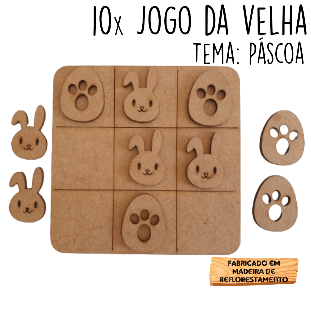 10 Jogos da velha Pascoa Ovo Coelho em MDF 10cm tabuleiro brinquedo presente lembrancinha kit