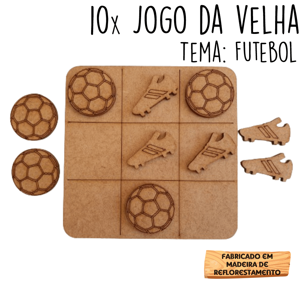 10 Jogos da velha Futebol Bola Chuteira em MDF 10cm tabuleiro brinquedo presente lembrancinha kit