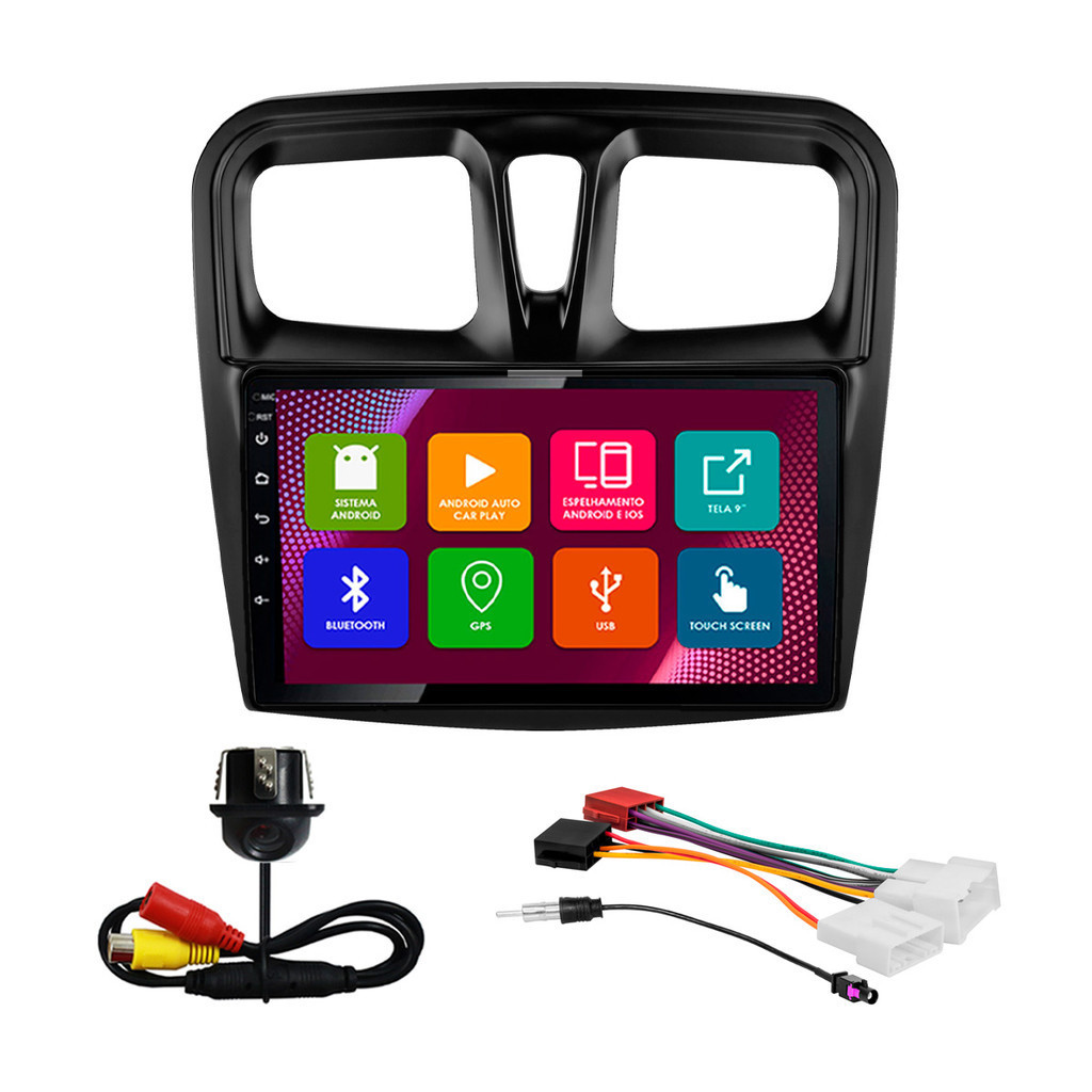 Kit Central Multimídia Android Sandero Logan 2015 2016 2017 2018 2019 2020 2021 2022 9 Polegadas Tv