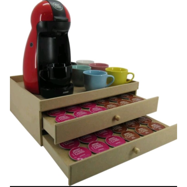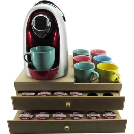 Porta Máquina e Porta Capsula em Mdf Bandeja Com Duas Gavetas Dulce Gusto 60 Unidade