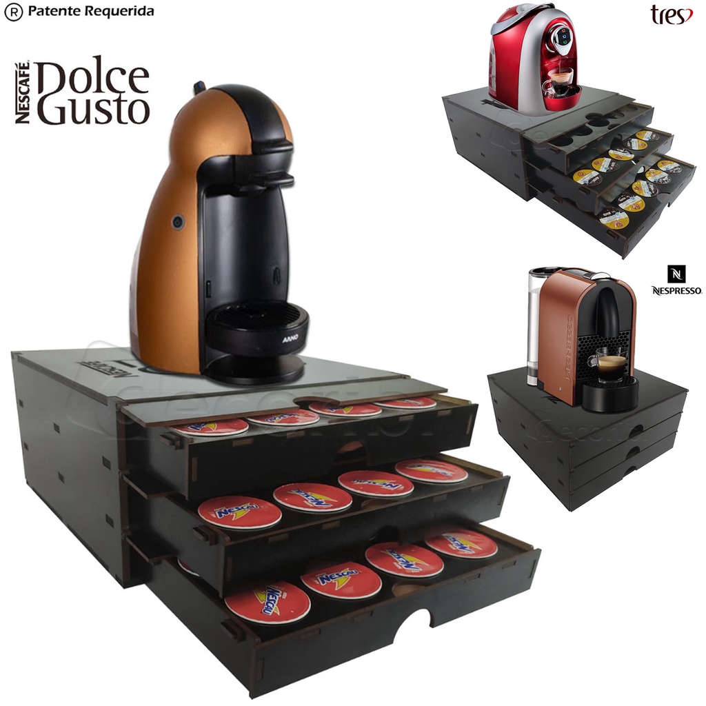 Caixa Porta Cápsula Café 2 Gavetas Compatível Com Dolce Gusto Nespresso Três Corações