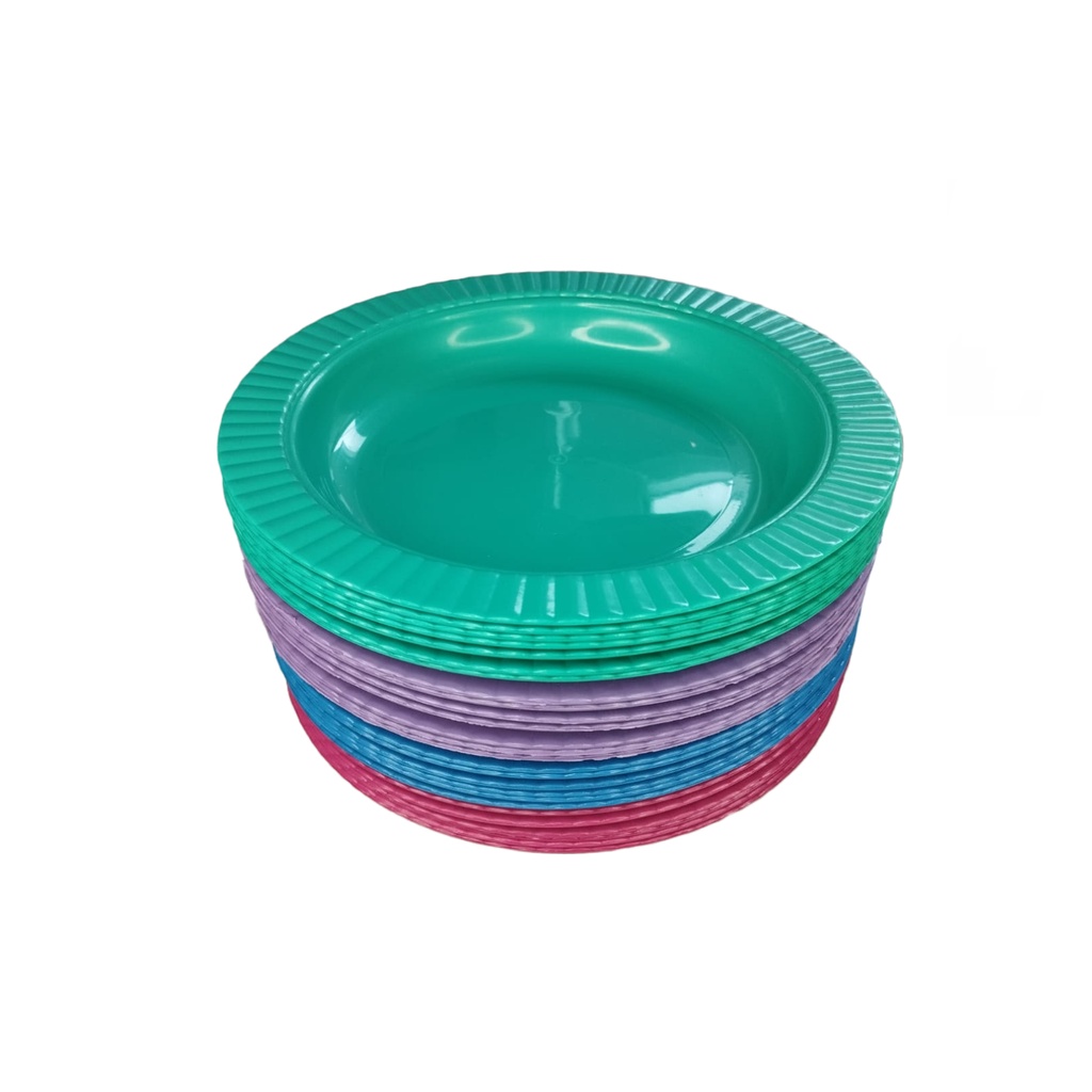Kit 20 Pratos Fundos Redondos Borda Ondulada Reutilizável - Refeições, festas, crianças
