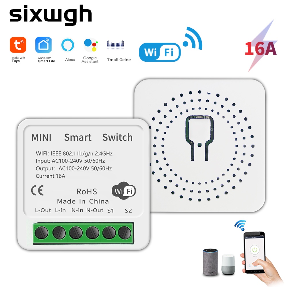Tuya mini wifi diy interruptor suporta 16/10a 2 vias módulo de automação residencial inteligente controle funciona com alexa google casa inteligente vida aplicativo