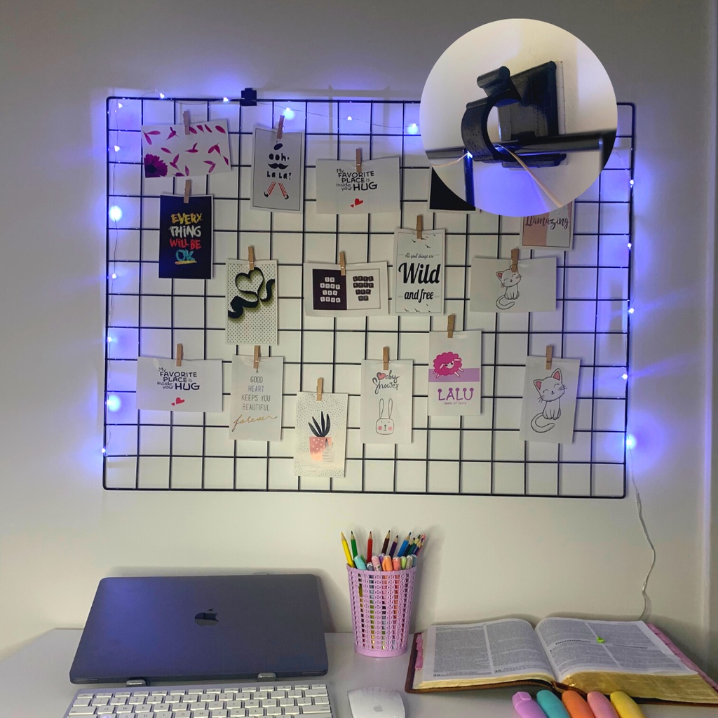 Kit Memory Board Com Led + Suporte De Parede + Mini Prendedores / Diversas Medidas e Cores! Mural Para Fotos. (Você comprando qualquer variação de tela, ela já irá seguir com os prendedores e o led incluso, sem a necessidade de compra avulsa)