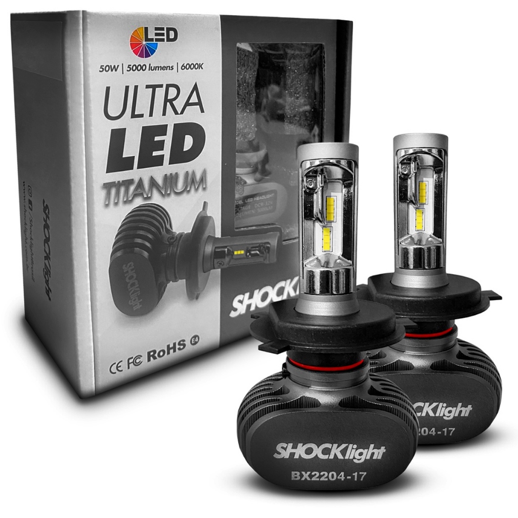 Kit Par Lâmpada Ultra Led Titanium Shocklight 10.000 Lúmens 6000k Encaixe H4