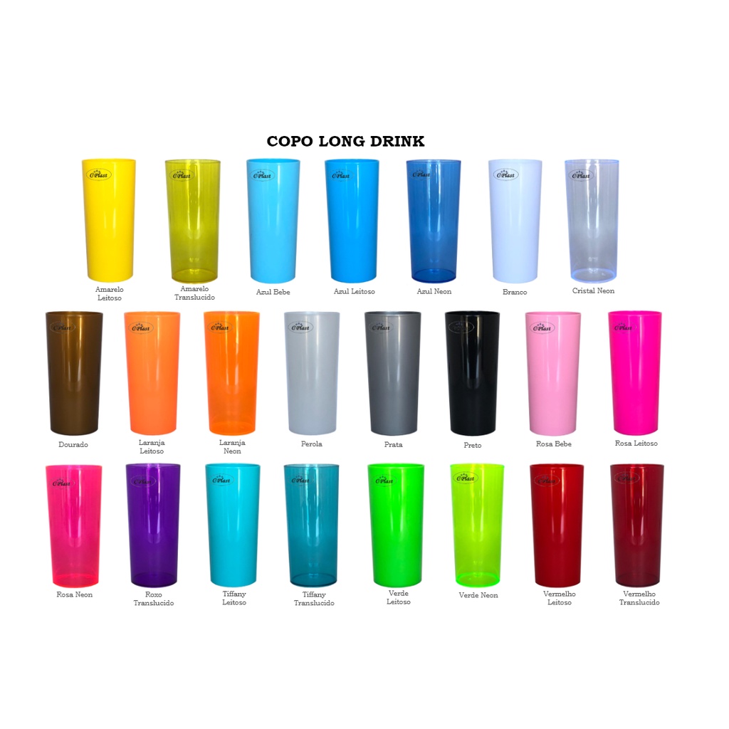 100 Copos Long Drink - Acrilico. Lindas cores, indique até 5 cores de sua escolha!