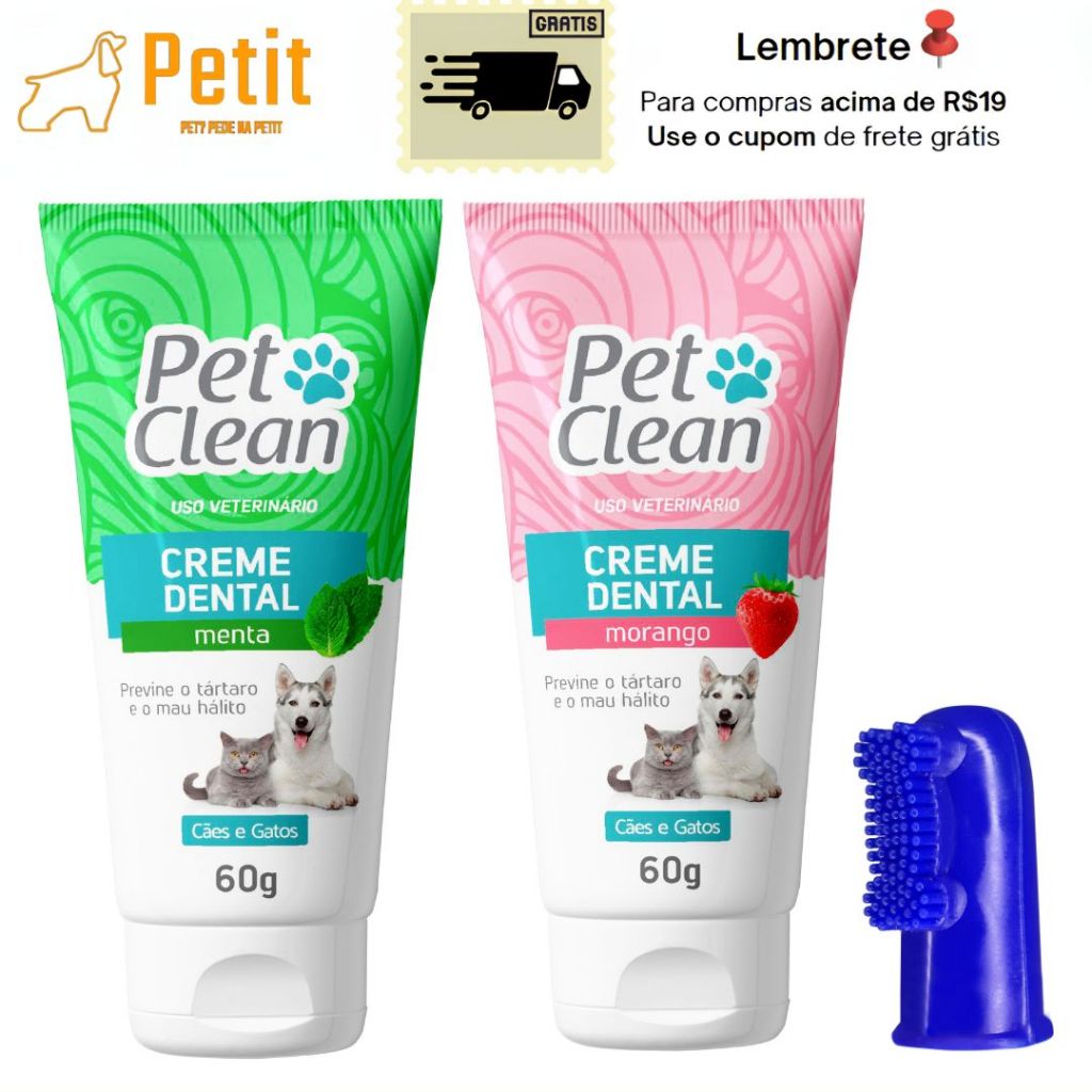Kit 2 ou 1 Creme Dental + Dedeira para Cachorro e Gato Pet Clean - 120g ou 60g