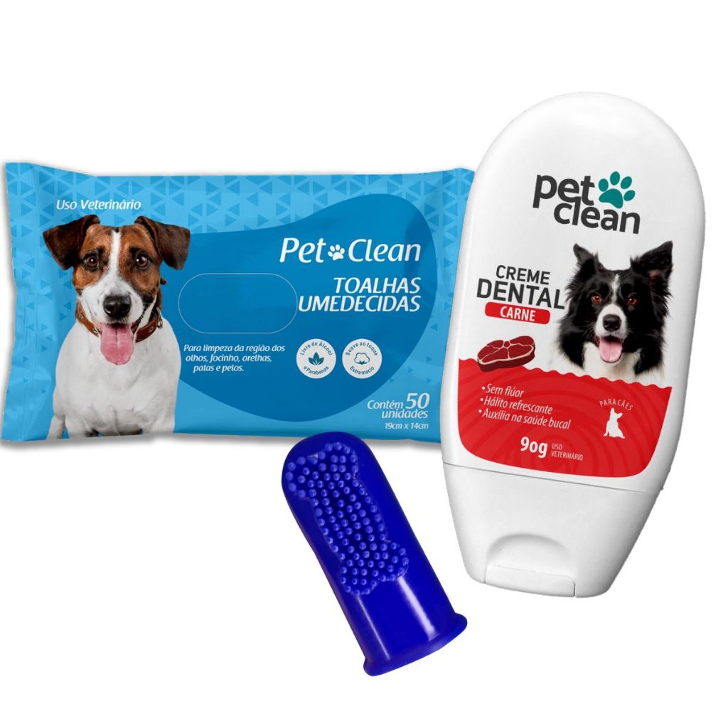 Pet Clean Kit Toalhas Umedecidas e Creme Dental para Cães e Gatos Acompanha Dedeira