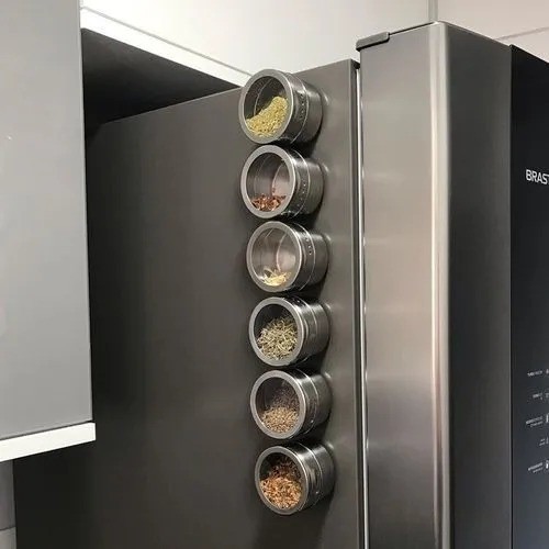 Porta Condimento Temperos Inox Magnético Com imã para Geladeira