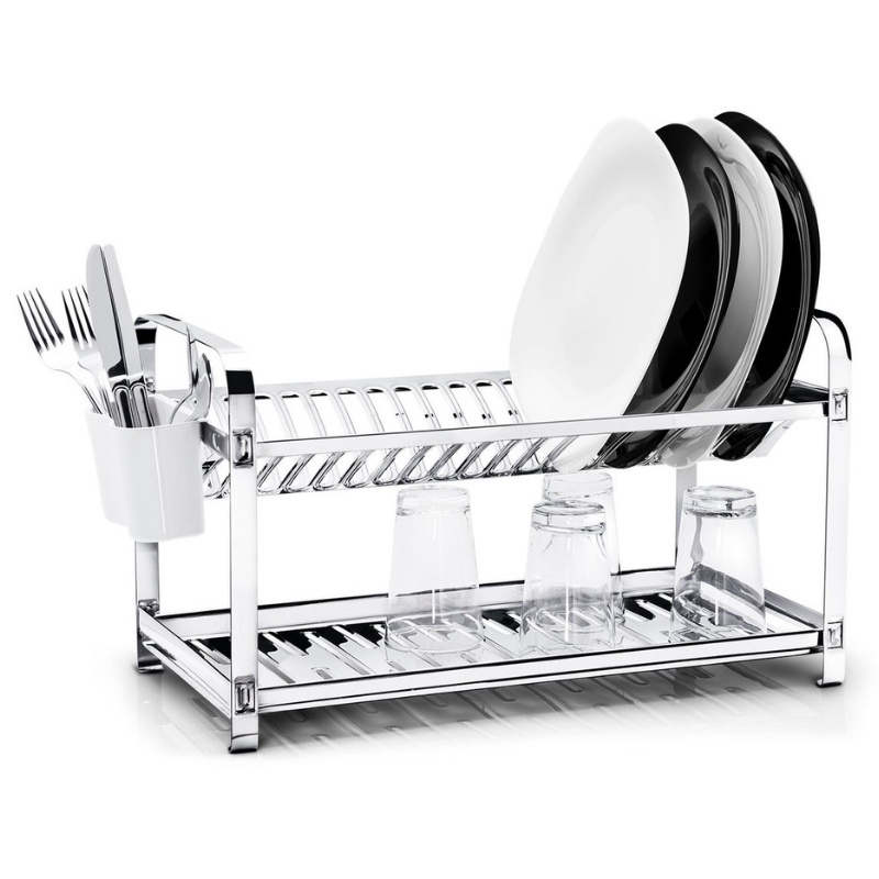 Escorredor De Aço Inox 20 Pratos Com 2 Andares Porta Talher