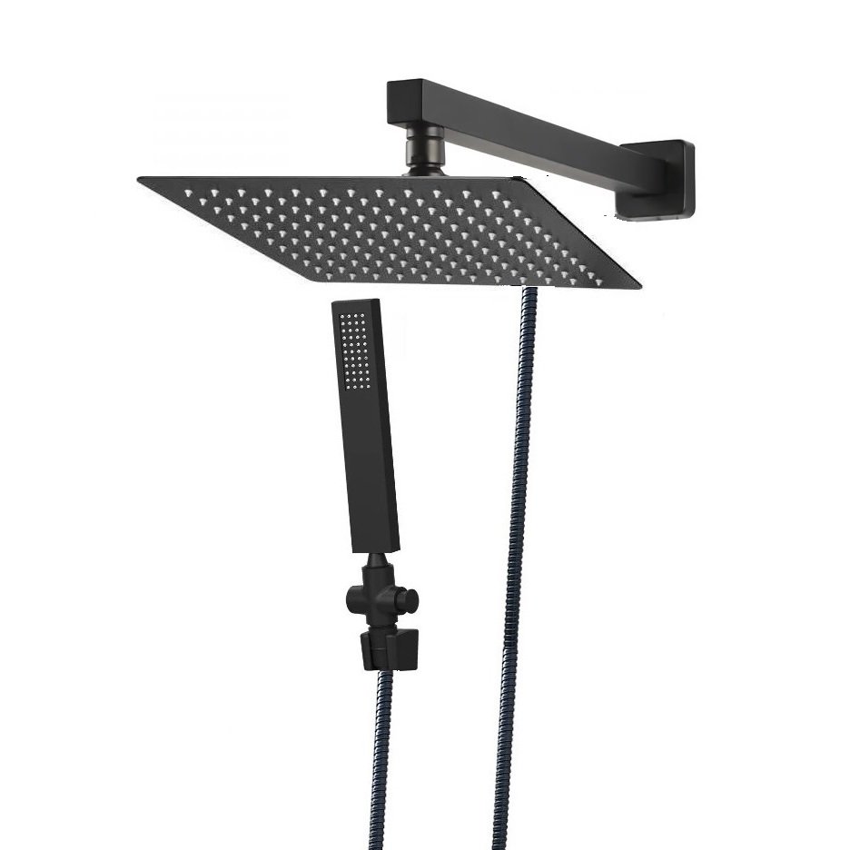 Chuveiro Ducha Interno E Externo Black 20x20 Com Duchinha De Mão Preto Fosco