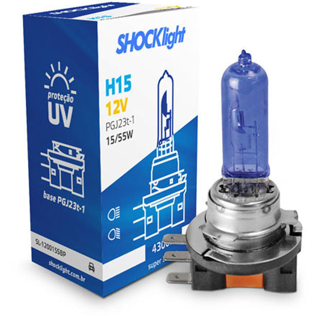 LAMPADA HALOGENA SUPER BRANCA H15 12V 15/55W PGJ23T-1