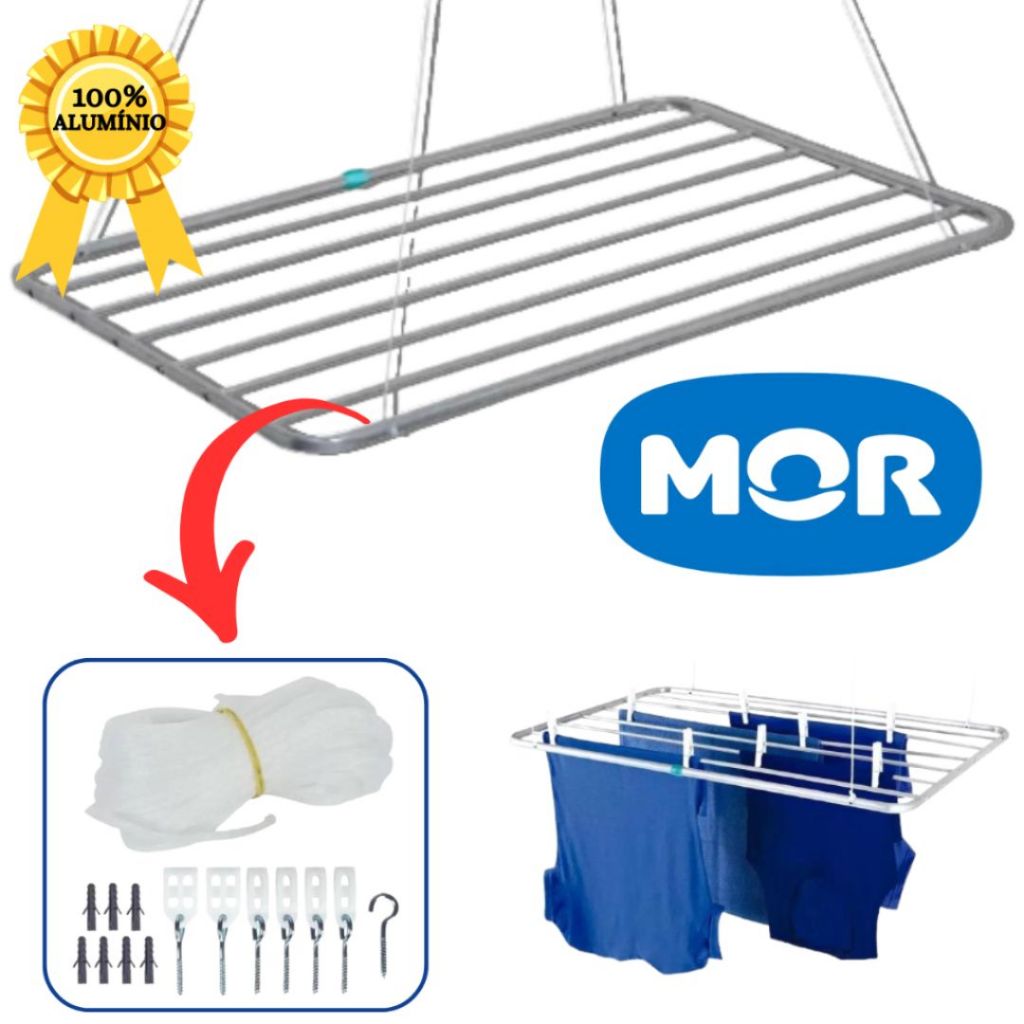 Varal de Teto Aluminio Reforçado MOR Grande 1,20 M com Kit Instalação