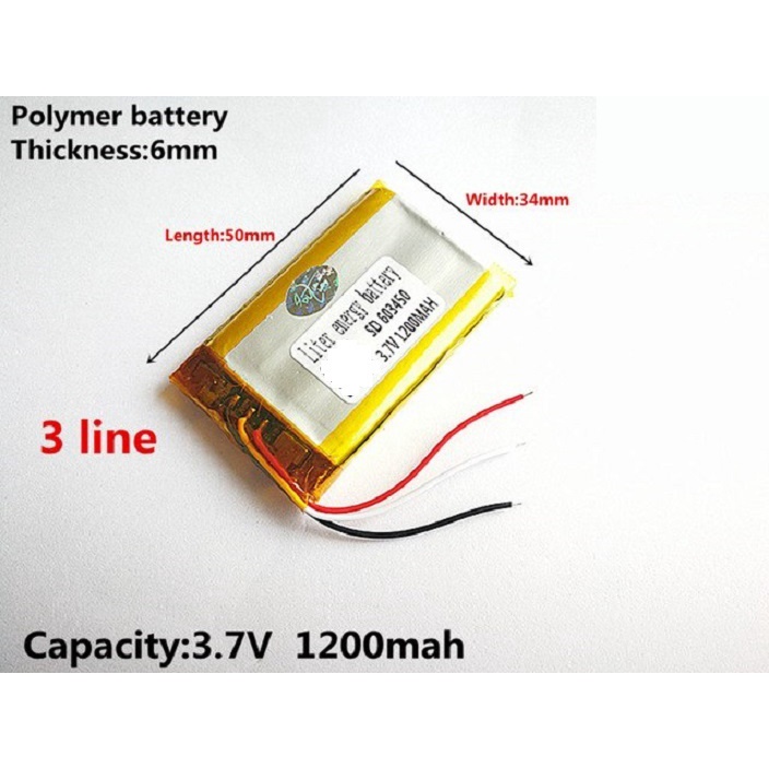 Bateria 603450 com 3 fios 3,7v 1200mah 6mm X 34mm X 50mm 603450
