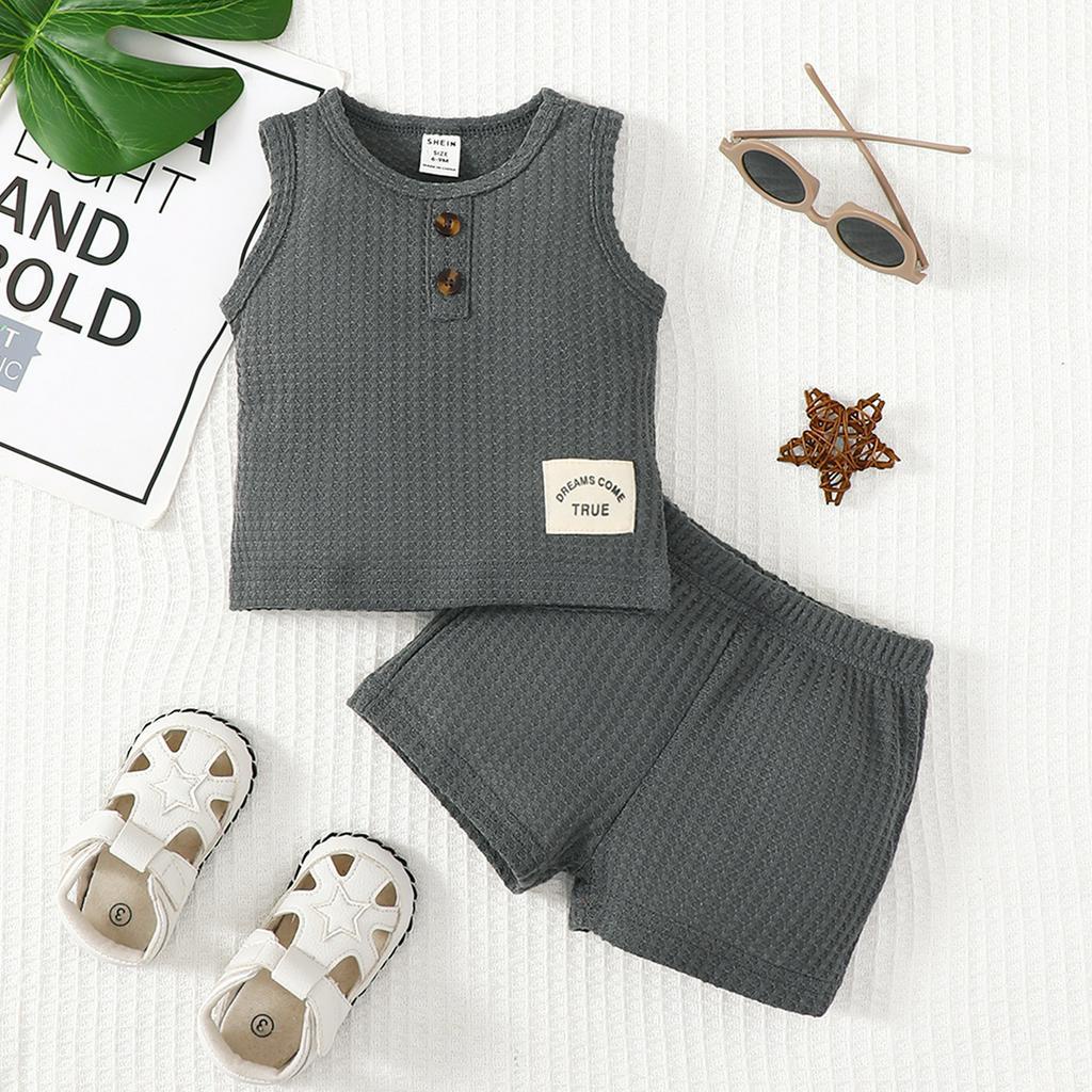 Value Choice baby boy sleeveless button-down Aniversário De Natal Halloween Camiseta top E shorts Conjunto De Duas Peças Terno De Bebê-Cor Sólida
