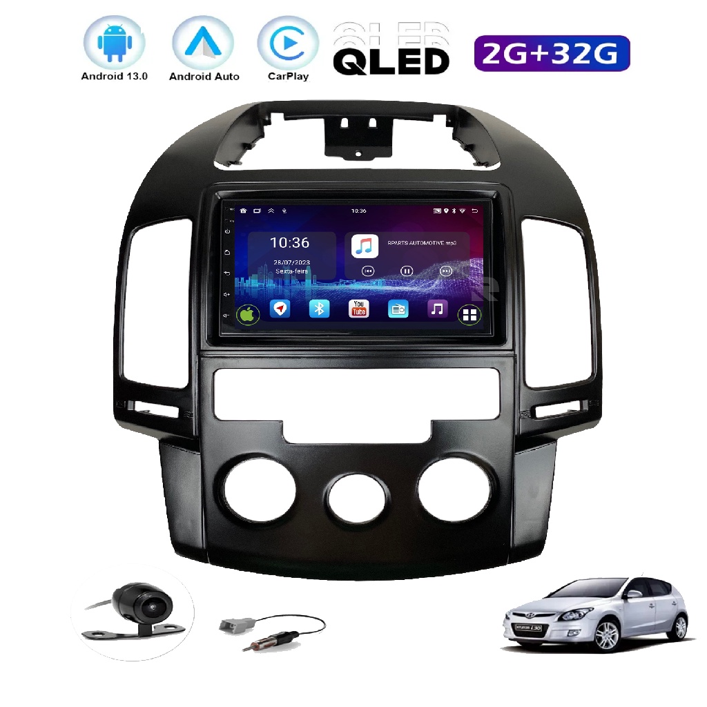 Kit Central Multimidia 2 Din Android Hyundai I30 2009 a 2012 Ar Analógico