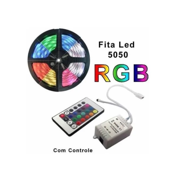 Fita Led Ultra Rgb 5050 5 Metros Com Controle Rolo 5m 16 Cores Colorida 300 Leds Aprova D'agua
