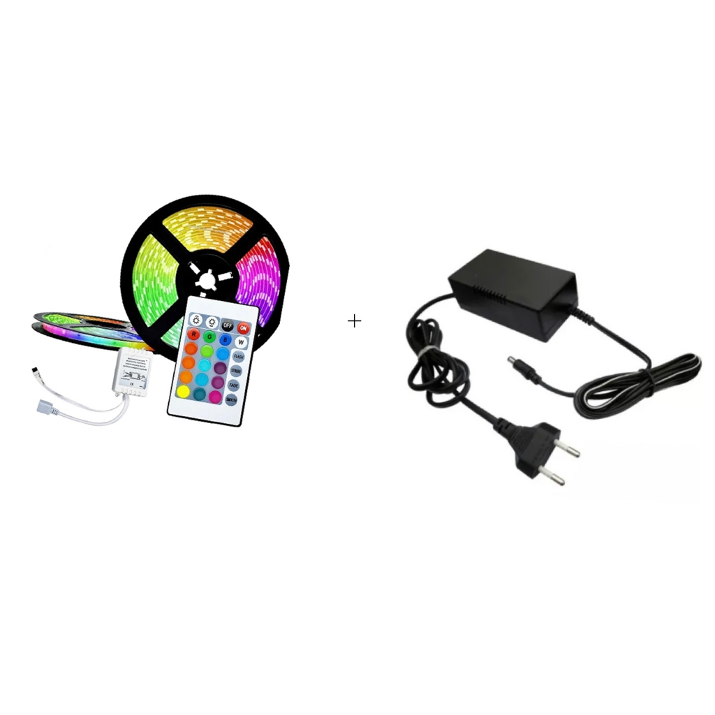 Fita Led Ultra Rgb 5050 5 Metros Com Controle Rolo 5m 16 Cores Colorida 300 Leds Prova D'agua + Fonte Plug De 5A