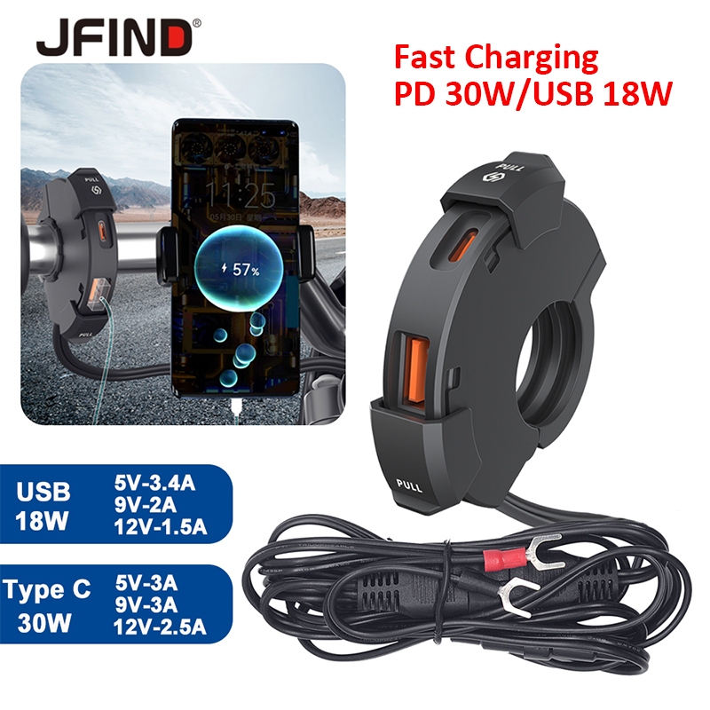 QC3.0 Guiador Rápido Carregador De Motocicleta 18W + 30W PD Power Portas Duplas Usb E Tipo C Telefone Moto À Prova D'água Para Honda Yamaha