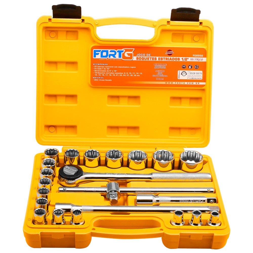 Jogo de Soquetes Estriados de 1/2 Pol. com 22 Peças