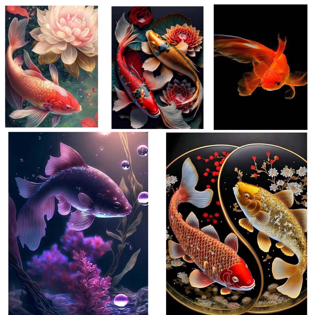 Pintura Com Diamante DIY Numerando Peixes Ricos , Mais de Um Padrão de Peixe Todos Os Anos 5D Número de Achado Adesivo digital Adequado Para A Parede Do Escritório Da Sala de Estar de
