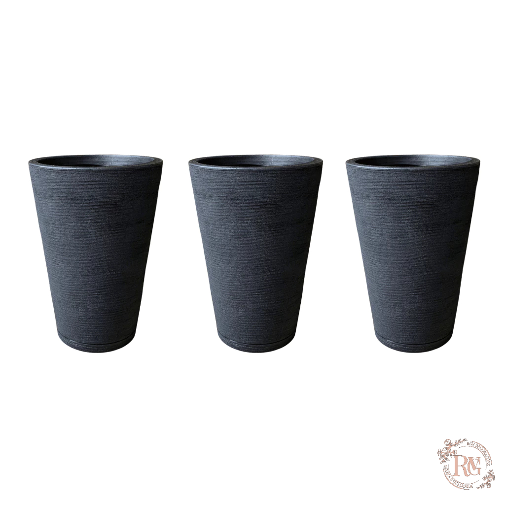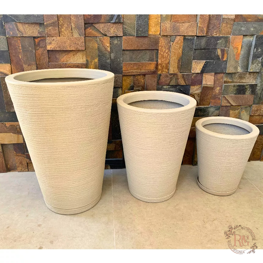 Kit 3 Vasos de Plantas Decorativo Polietileno Coluna Redonda Cone Texturizados Nº1 Com Prato
