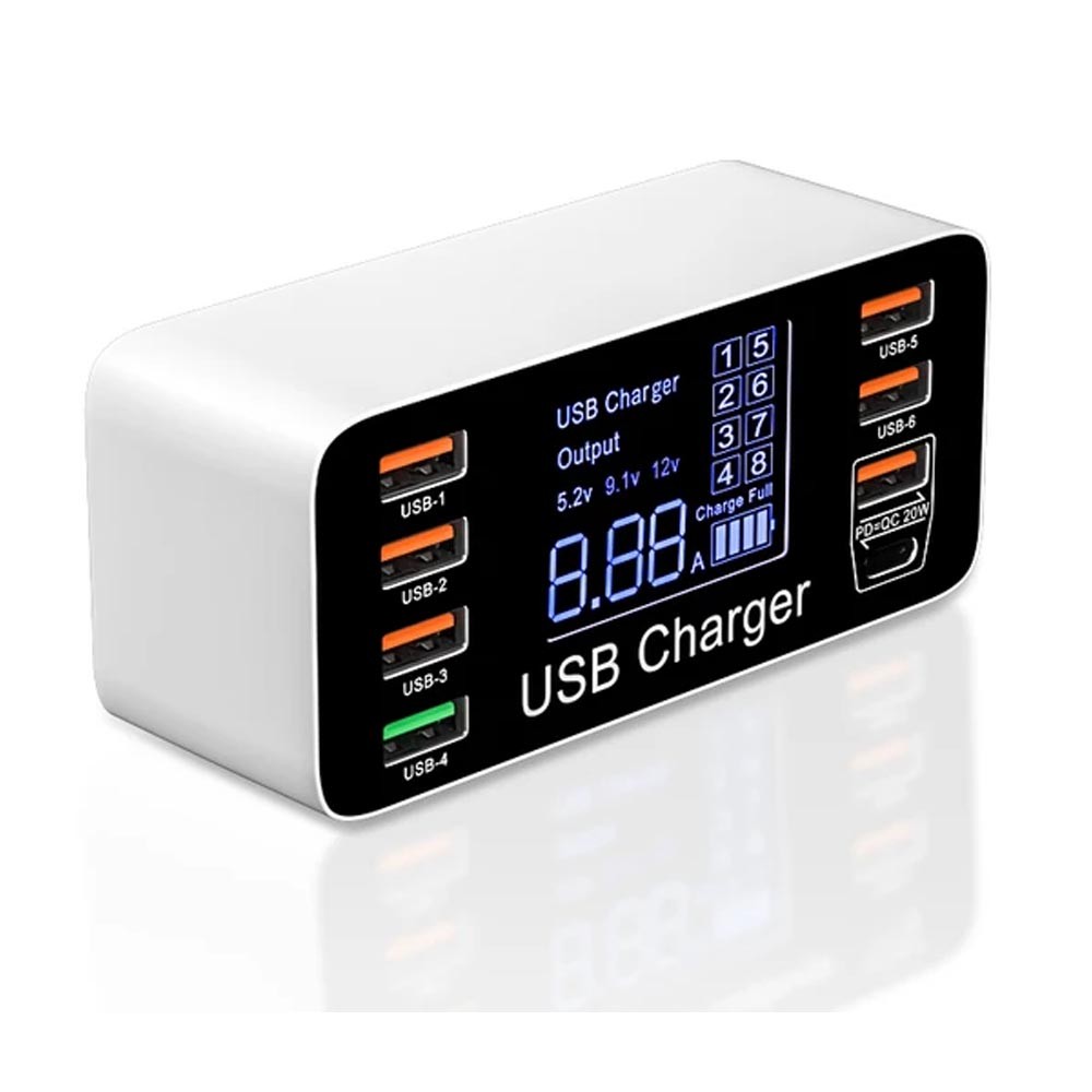 Carregador Inteligente Com 8 Portas Tela Led USB Charger Estação de Carregar Multiportas 40W Qc 3.0