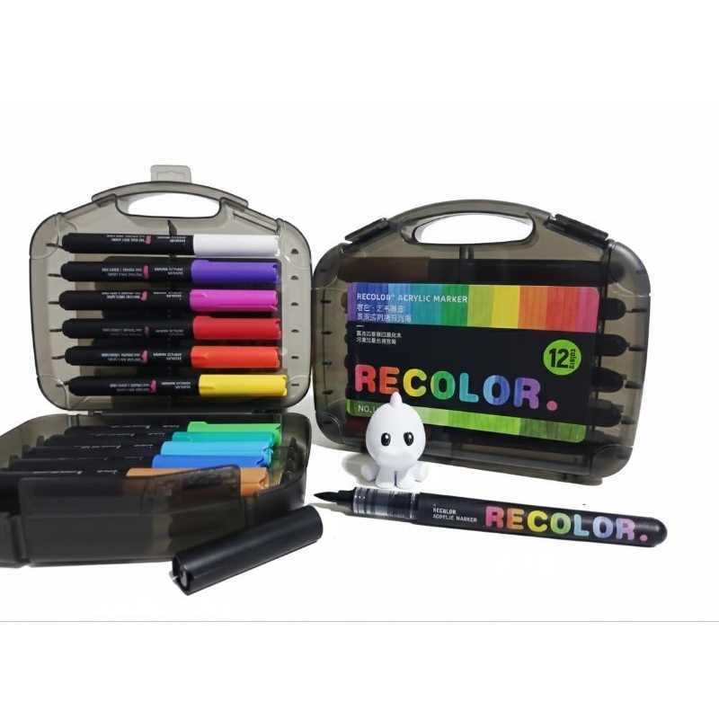kit Maleta de Caneta Marcador Acrílico permanente 12 cores RECOLOR para Impressão 3D Vidro Madeira Artesanato